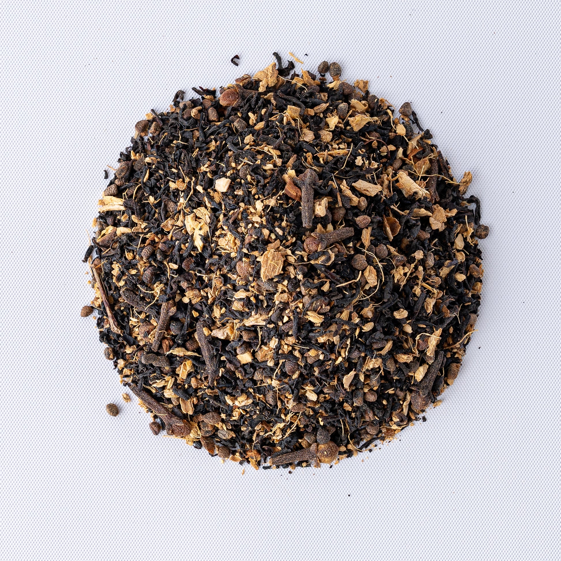 Ingredients: Whole Leaf Black Tea, Ginger Root, Cinnamon Chips, Crushed Green Cardamom, and Chai Flavoring