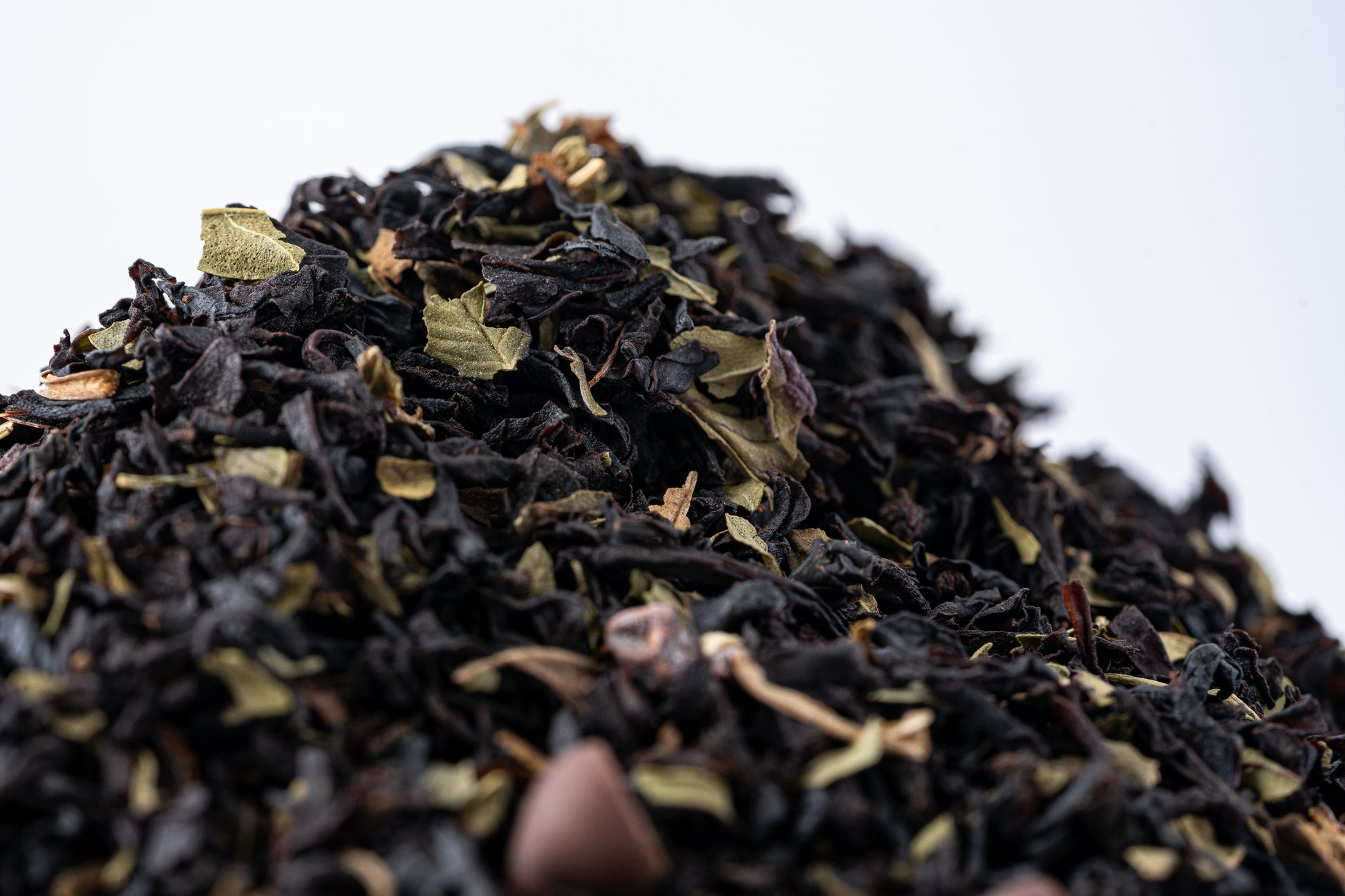 Peppermint Patty black tea is a bold blend of black tea, peppermint leaves, chocolate liquor, cocoa nibs, and real chocolate chips. The chocolate and cocoa create a velvety smooth mouthfeel unlike any other tea. We love this hot tea because the peppermint adds a memorable cooling sensation that provides invigorating refreshment.