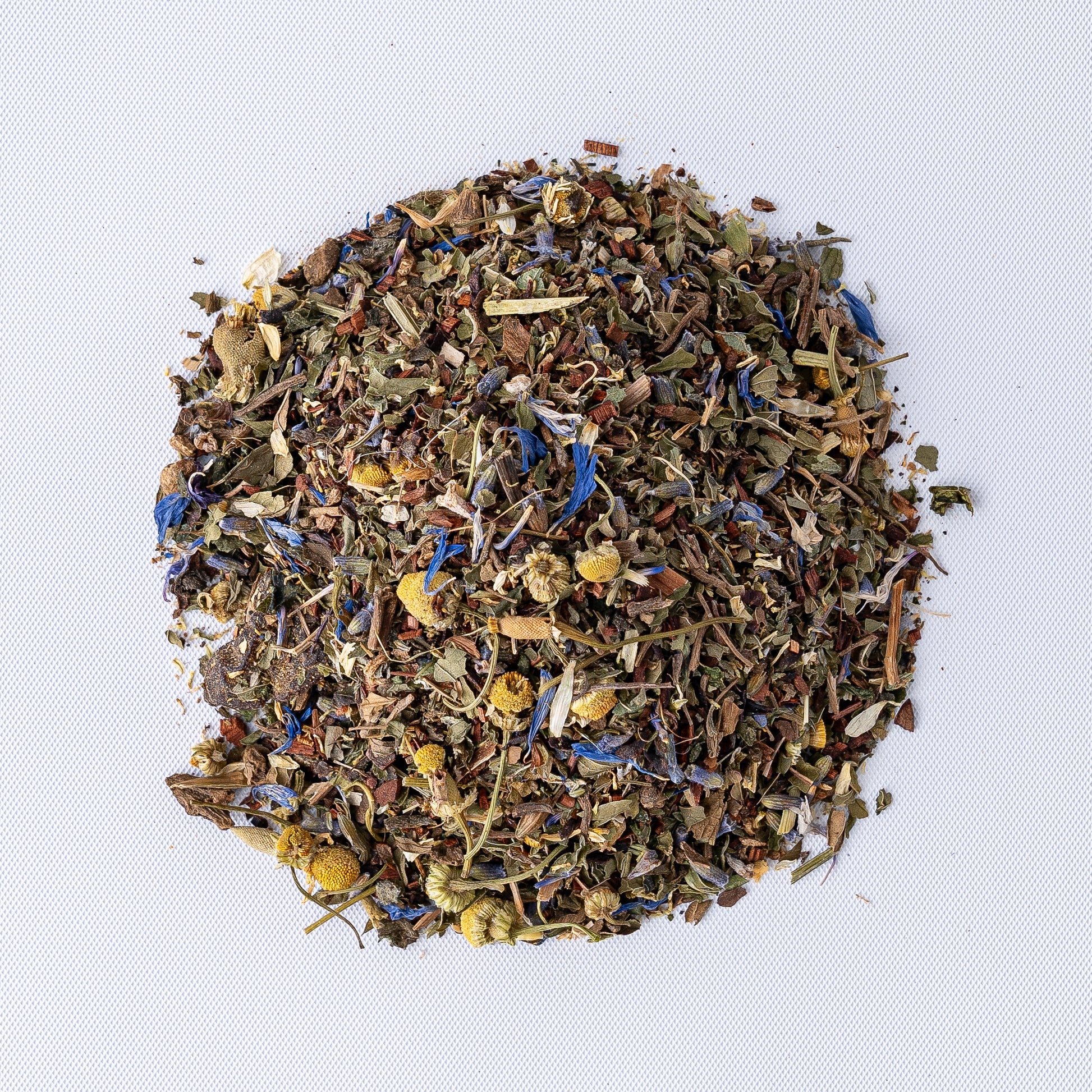Ingredients: Valerian Root, Honeybush Tea, Chamomile Flowers, Spearmint Leaves, Passion Flowers, Lemon Balm, Lavender, Cherries & Blue Cornflowers